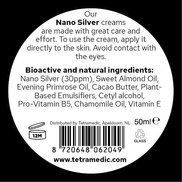 Apply the cream directly to the skin. It can be used externally on (burn) wounds, fungi, and infections. The silver particles have antibacterial properties that help cleanse and disinfect the skin.